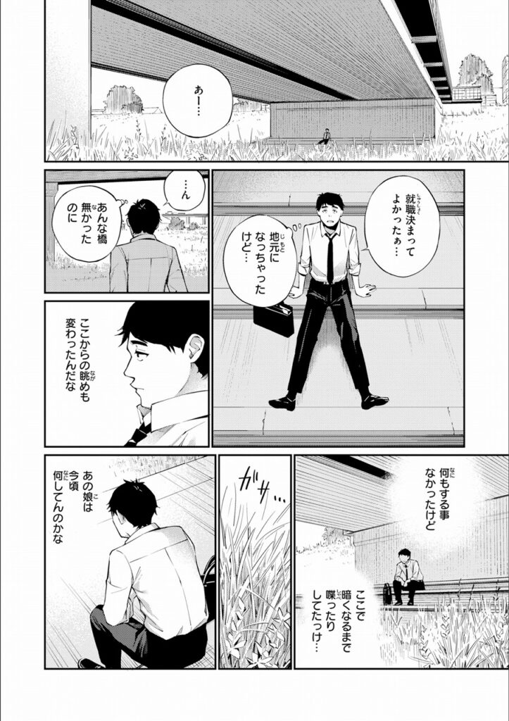 Having secured a job, he returns to his hometown. While stopping by the place filled with memories of childhood play and gazing at the changed scenery, Misa—his old playmate—suddenly appears. Unlike the boyish girl she used to be, her hair has grown long, and she’s become cute and feminine. Amidst the awkward reunion, the two begin recalling the past. But Misa, wanting to show she’s no longer the same as before, lifts her skirt to reveal…